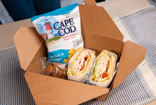 Your choice of a sandwich or salad, Cape Cod chips, and a freshly baked cookie.